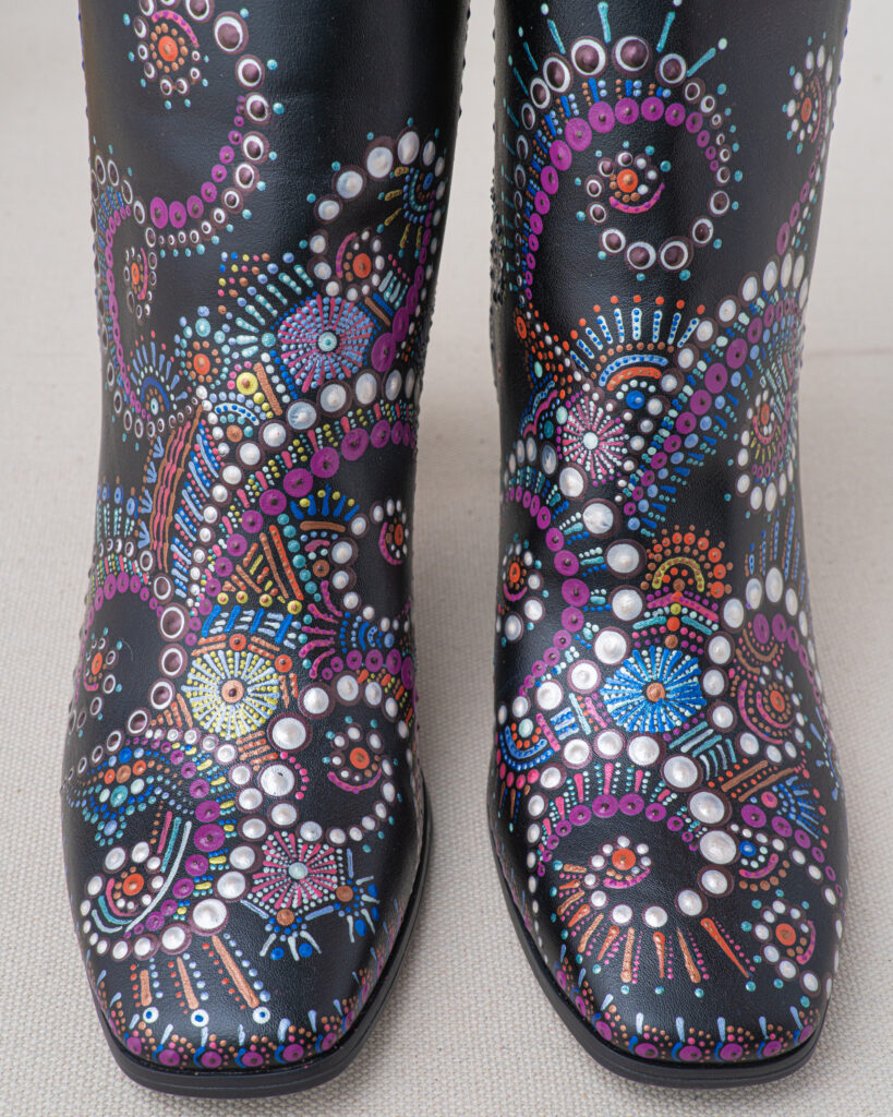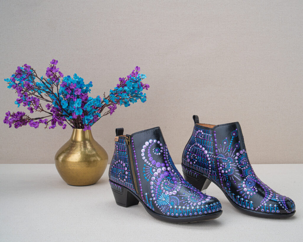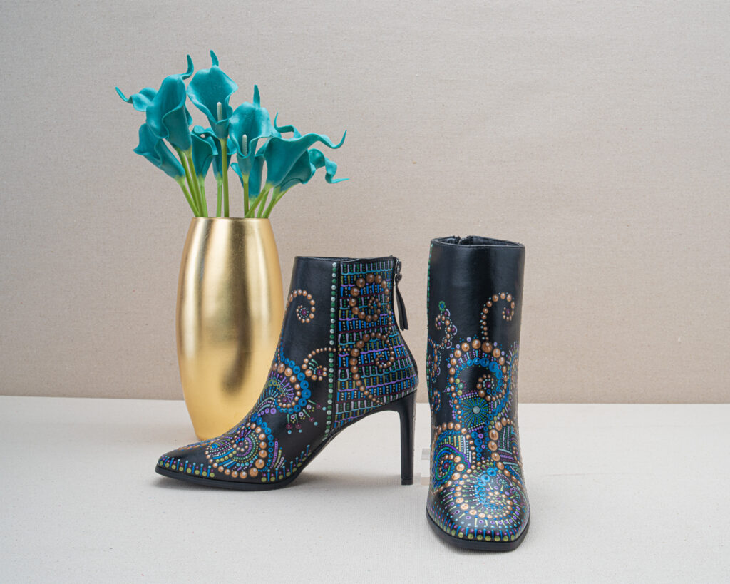 Each piece is a colorful journey through custom, hand-painted shoes and boots. Like a canvas, our shoes are designed to celebrate your individuality through wearable art.